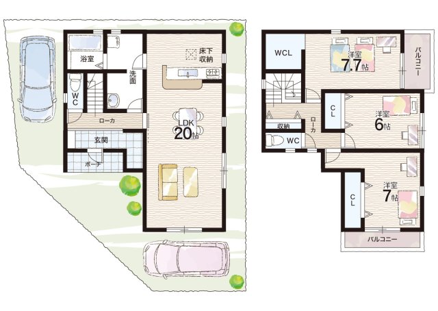 - ※完成予想図やCG合成画像は、門塀・植栽・庭・外観等、実際とは多少異なる場合があります。