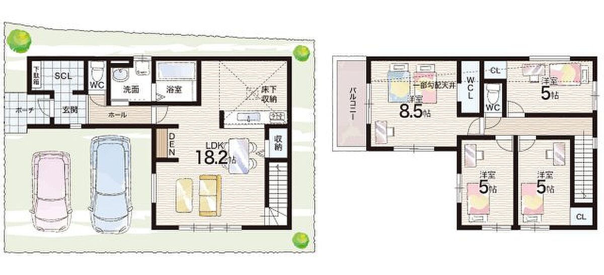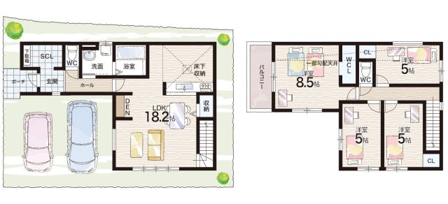 - ※完成予想図やCG合成画像は、門塀・植栽・庭・外観等、実際とは多少異なる場合があります。
