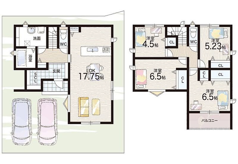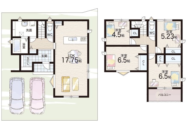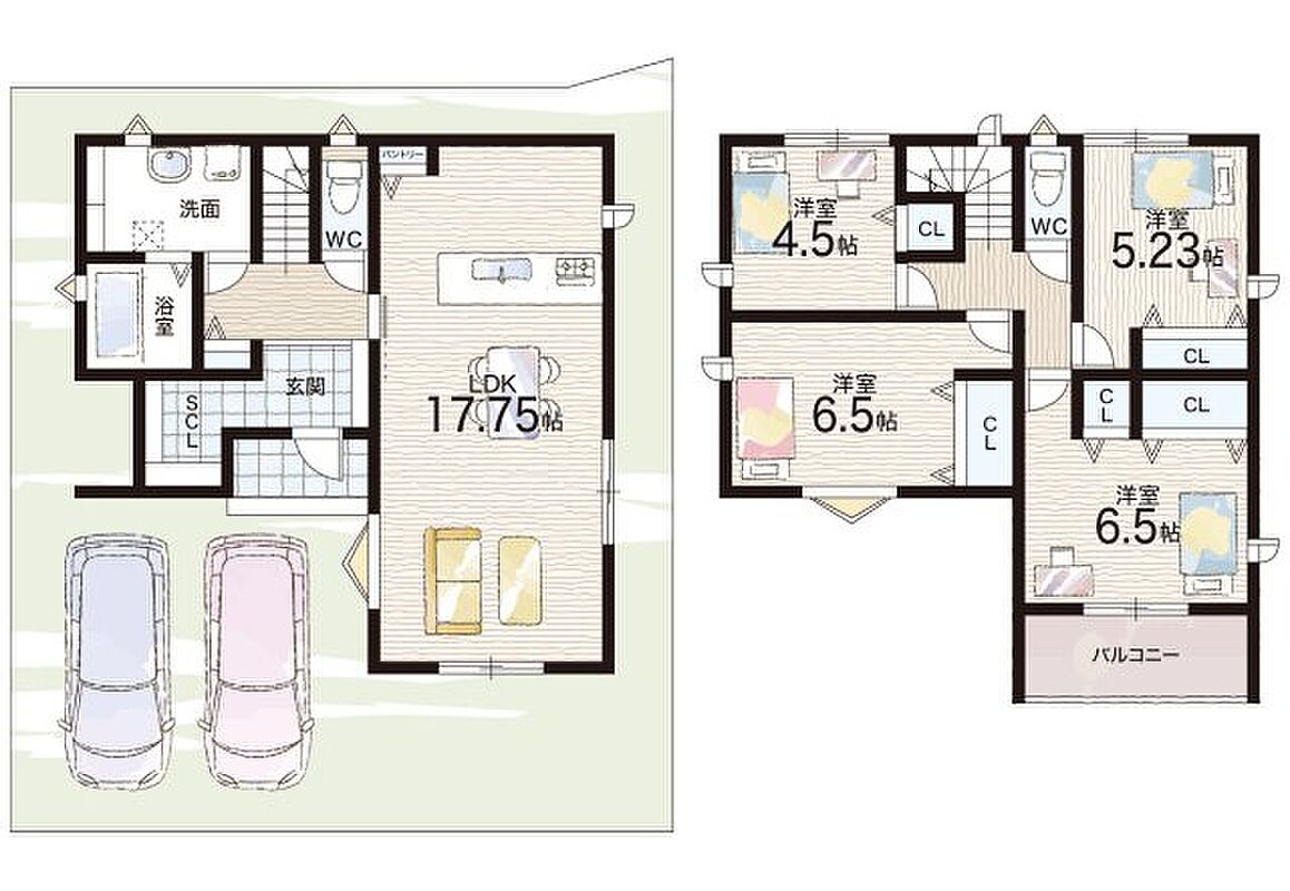 - ※完成予想図やCG合成画像は、門塀・植栽・庭・外観等、実際とは多少異なる場合があります。