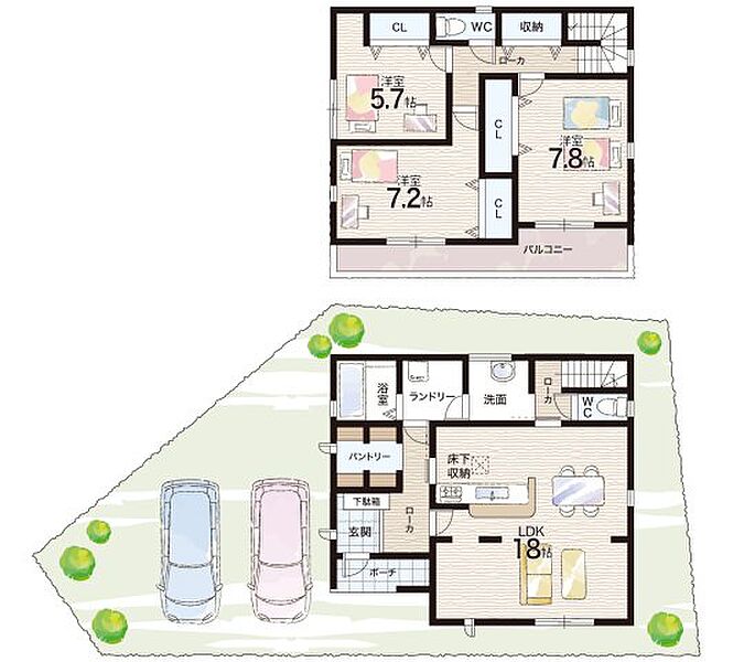- ※完成予想図やCG合成画像は、門塀・植栽・庭・外観等、実際とは多少異なる場合があります。