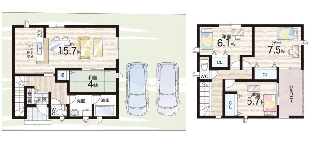 - ※完成予想図やCG合成画像は、門塀・植栽・庭・外観等、実際とは多少異なる場合があります。