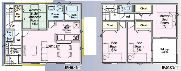 | 建物面積 | 100.44m2~105.30m2 | 土地面積 | 113.09m2~130.67m2 |