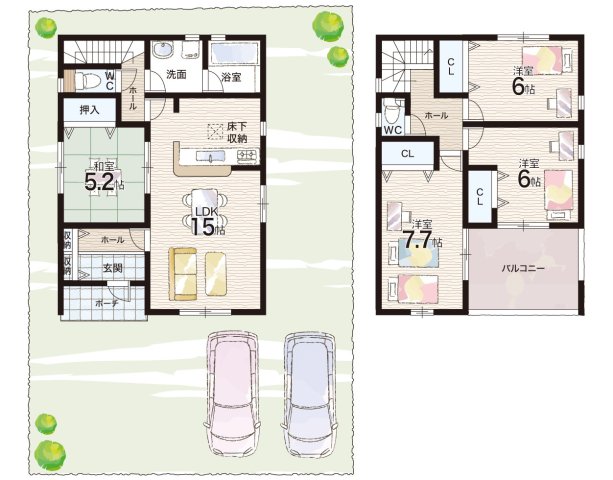 - ※完成予想図やCG合成画像は、門塀・植栽・庭・外観等、実際とは多少異なる場合があります。