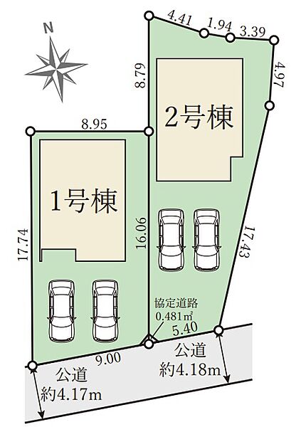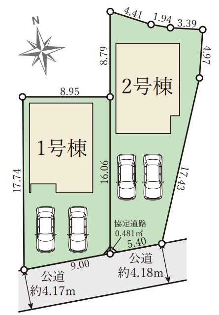 | 駐車場 | 2台 | 道路の幅員 | 南側4.1m公道 |