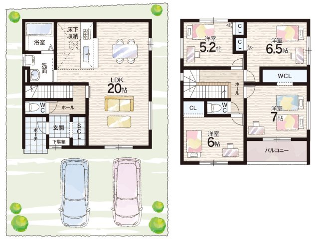 - ※完成予想図やCG合成画像は、門塀・植栽・庭・外観等、実際とは多少異なる場合があります。