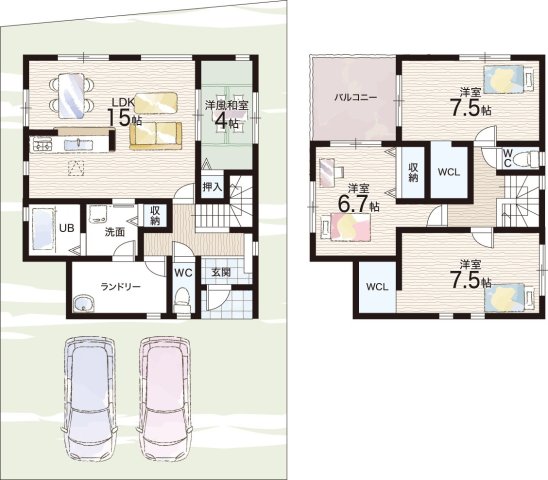 - ※完成予想図やCG合成画像は、門塀・植栽・庭・外観等、実際とは多少異なる場合があります。