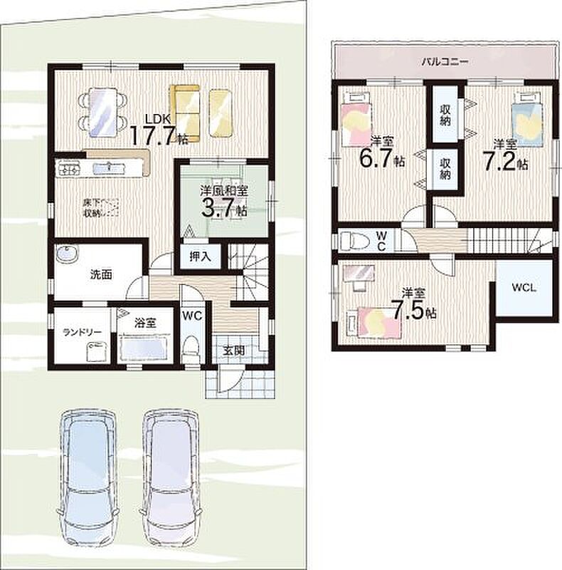 - ※完成予想図やCG合成画像は、門塀・植栽・庭・外観等、実際とは多少異なる場合があります。