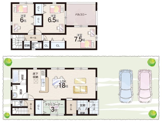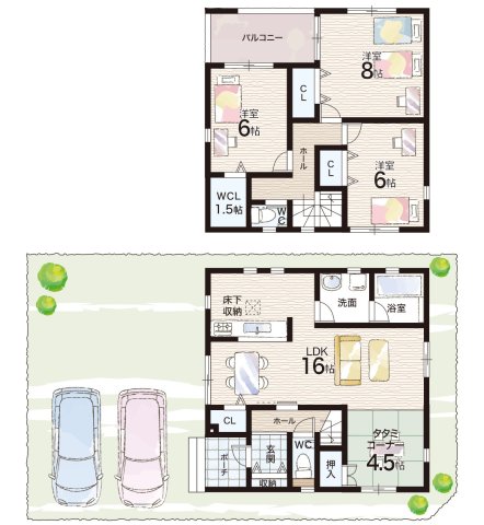 - ※完成予想図やCG合成画像は、門塀・植栽・庭・外観等、実際とは多少異なる場合があります。