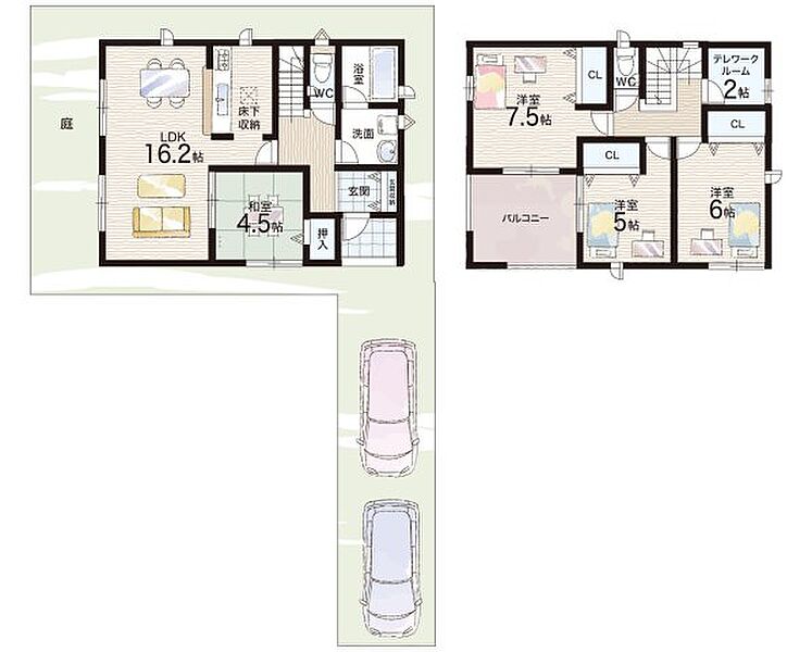 - ※完成予想図やCG合成画像は、門塀・植栽・庭・外観等、実際とは多少異なる場合があります。