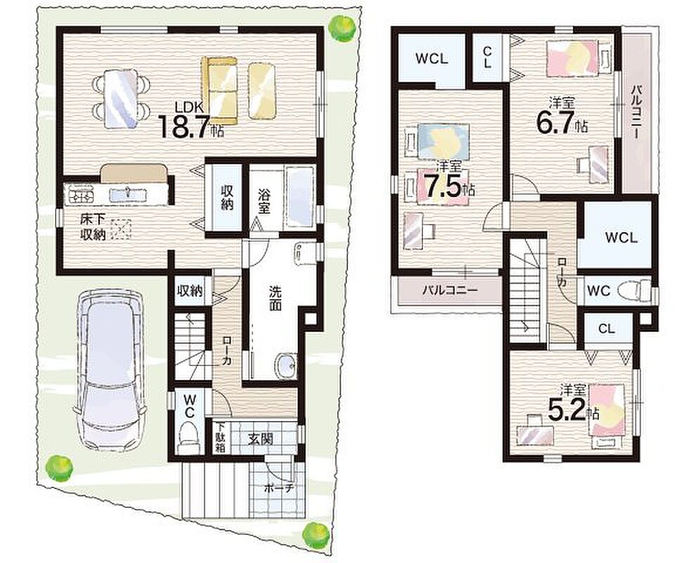 - ※完成予想図やCG合成画像は、門塀・植栽・庭・外観等、実際とは多少異なる場合があります。