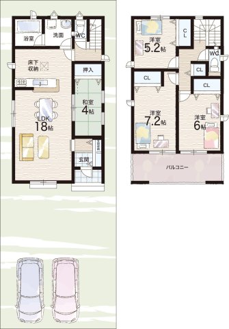- ※完成予想図やCG合成画像は、門塀・植栽・庭・外観等、実際とは多少異なる場合があります。