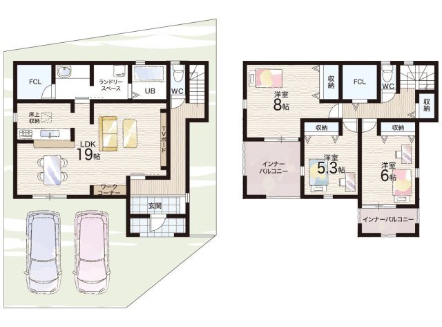 | 駐車場 | 2台 | 道路の幅員 | 北東側6.0m公道 |