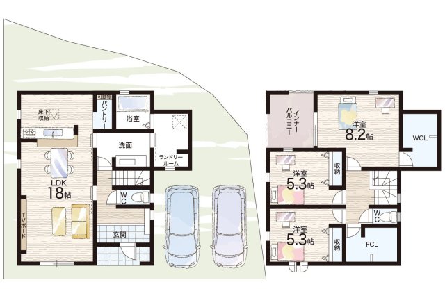 | 建物面積 | 112.33m2~116.75m2 | 土地面積 | 138.67m2~151.98m2 |