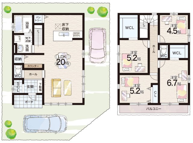 - ※完成予想図やCG合成画像は、門塀・植栽・庭・外観等、実際とは多少異なる場合があります。