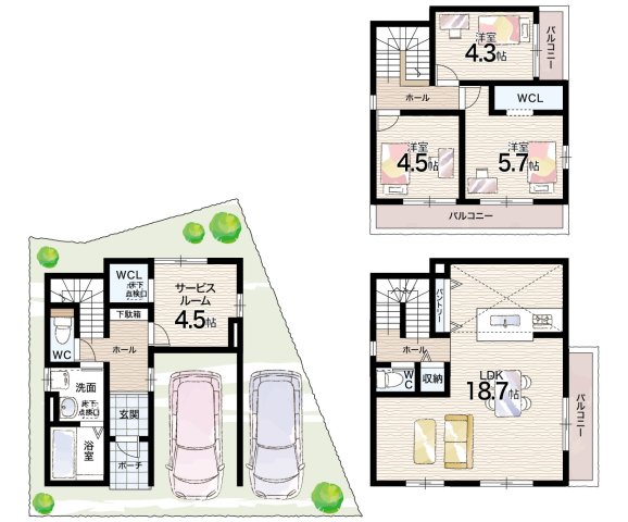 - ※完成予想図やCG合成画像は、門塀・植栽・庭・外観等、実際とは多少異なる場合があります。