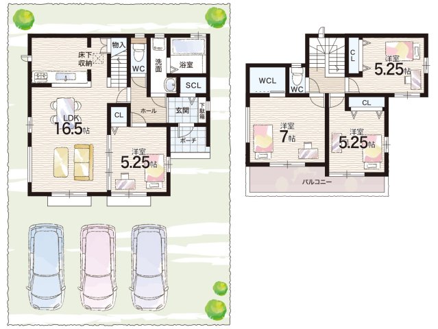 - ※完成予想図やCG合成画像は、門塀・植栽・庭・外観等、実際とは多少異なる場合があります。
