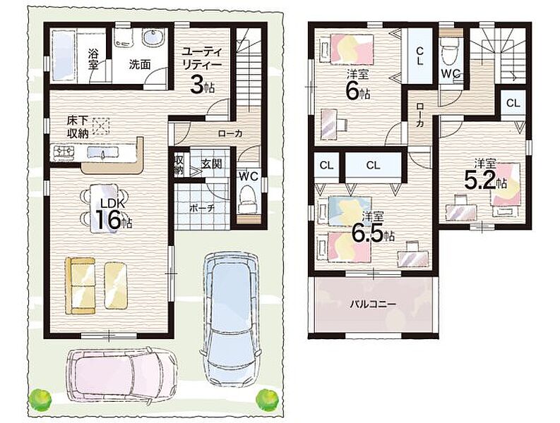 - ※完成予想図やCG合成画像は、門塀・植栽・庭・外観等、実際とは多少異なる場合があります。