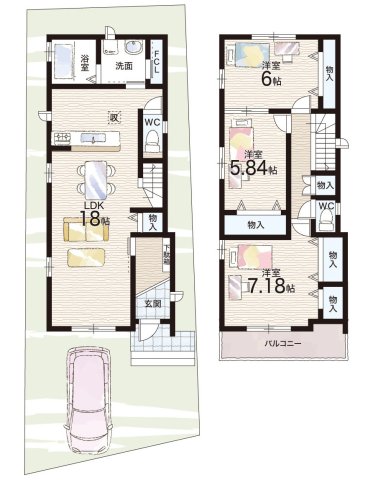 | 間取り | 3LDK+S(納戸) | 建物構造 | 木造 地上2階建て |