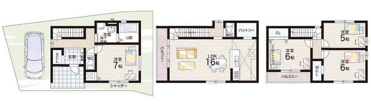 - ※完成予想図やCG合成画像は、門塀・植栽・庭・外観等、実際とは多少異なる場合があります。