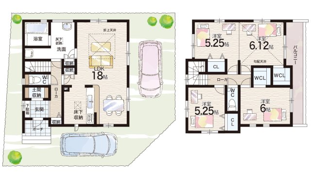 - ※完成予想図やCG合成画像は、門塀・植栽・庭・外観等、実際とは多少異なる場合があります。