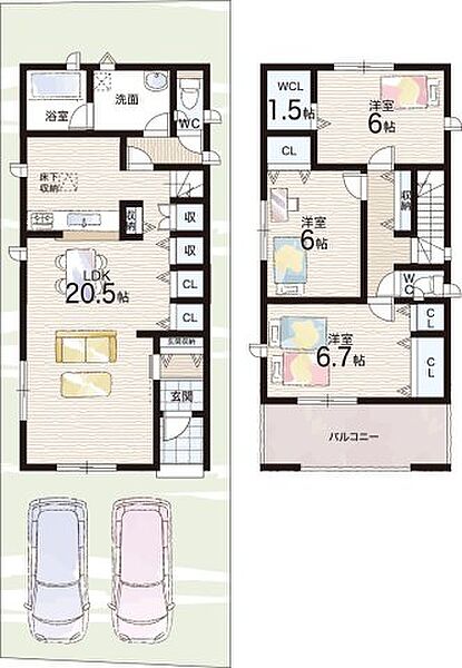 - ※完成予想図やCG合成画像は、門塀・植栽・庭・外観等、実際とは多少異なる場合があります。