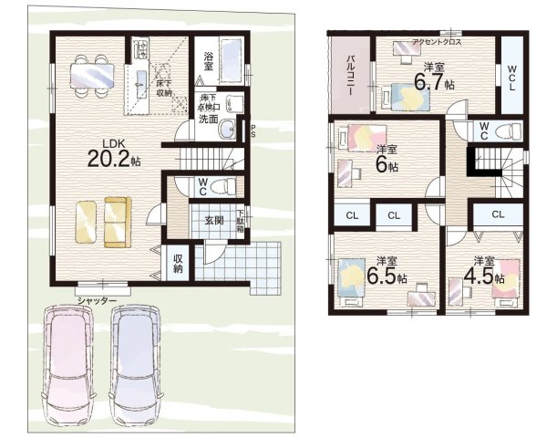 - ※完成予想図やCG合成画像は、門塀・植栽・庭・外観等、実際とは多少異なる場合があります。