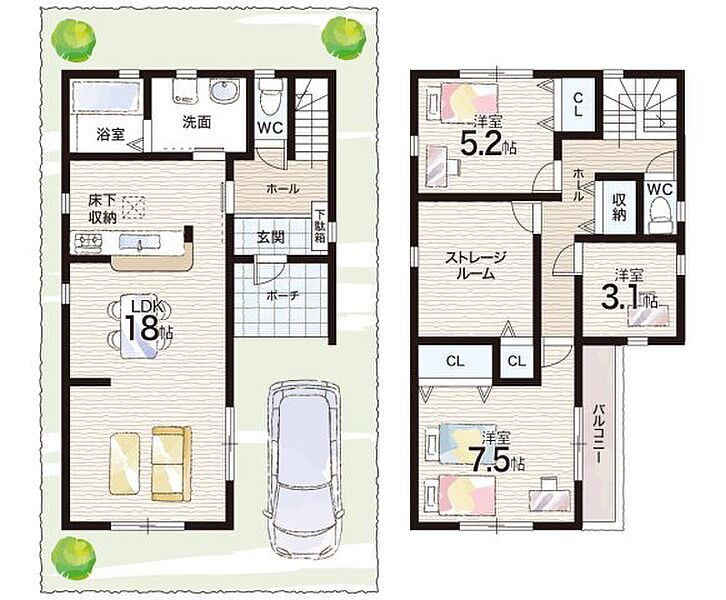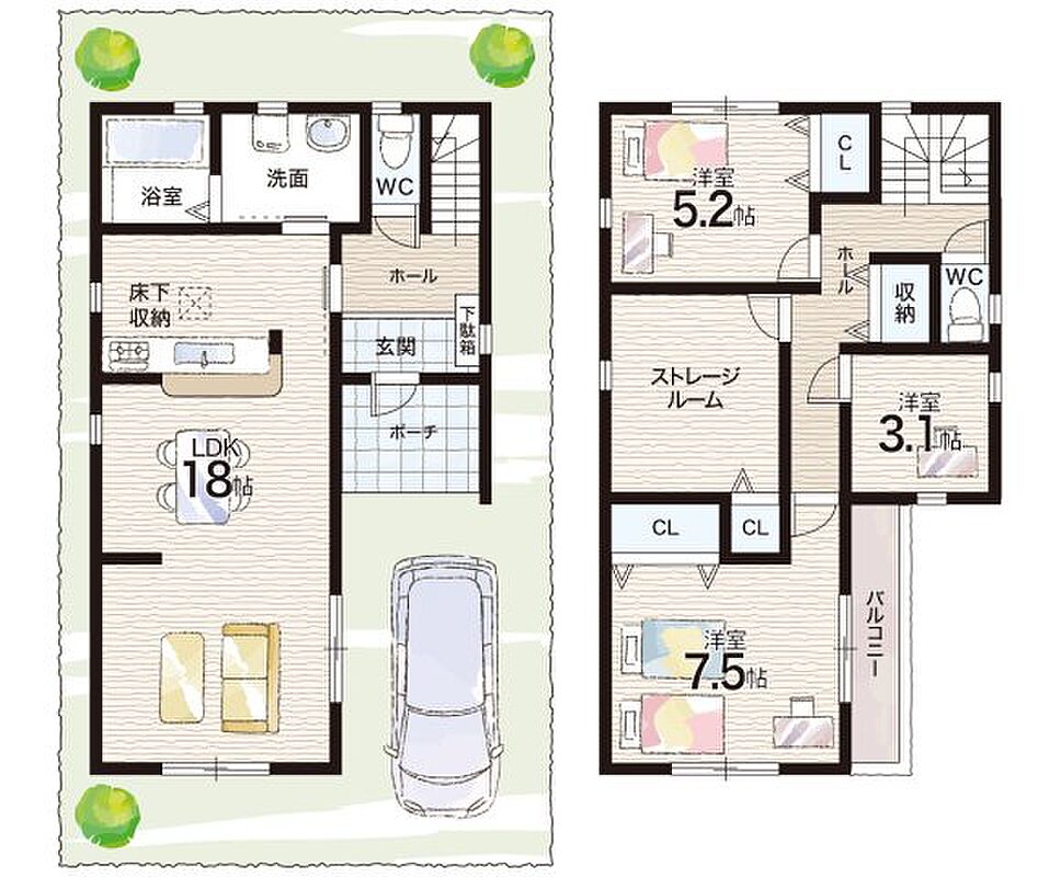 | 間取り | 3LDK+S(納戸) | 建物構造 | 木造 地上2階建て |