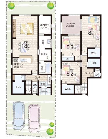 | 駐車場 | 2台 | 道路の幅員 | 北側5.8m公道 |