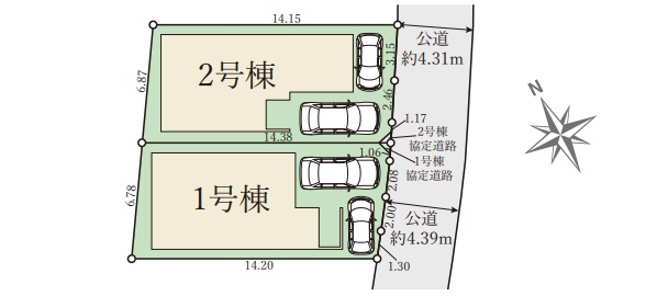 | 駐車場 | 2台 | 道路の幅員 | 東側4.3m公道 |