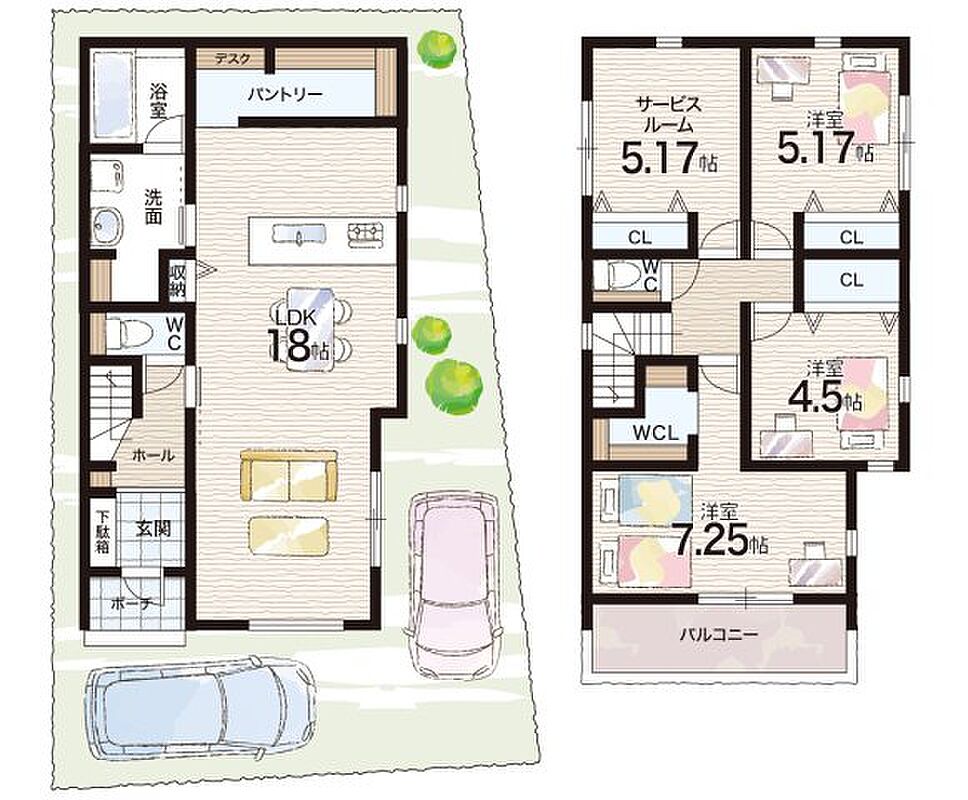 - ※完成予想図やCG合成画像は、門塀・植栽・庭・外観等、実際とは多少異なる場合があります。