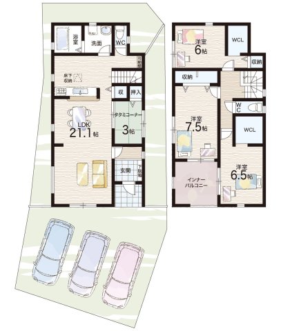 | 駐車場 | 3台 | 道路の幅員 | 南東側6.9m公道 |