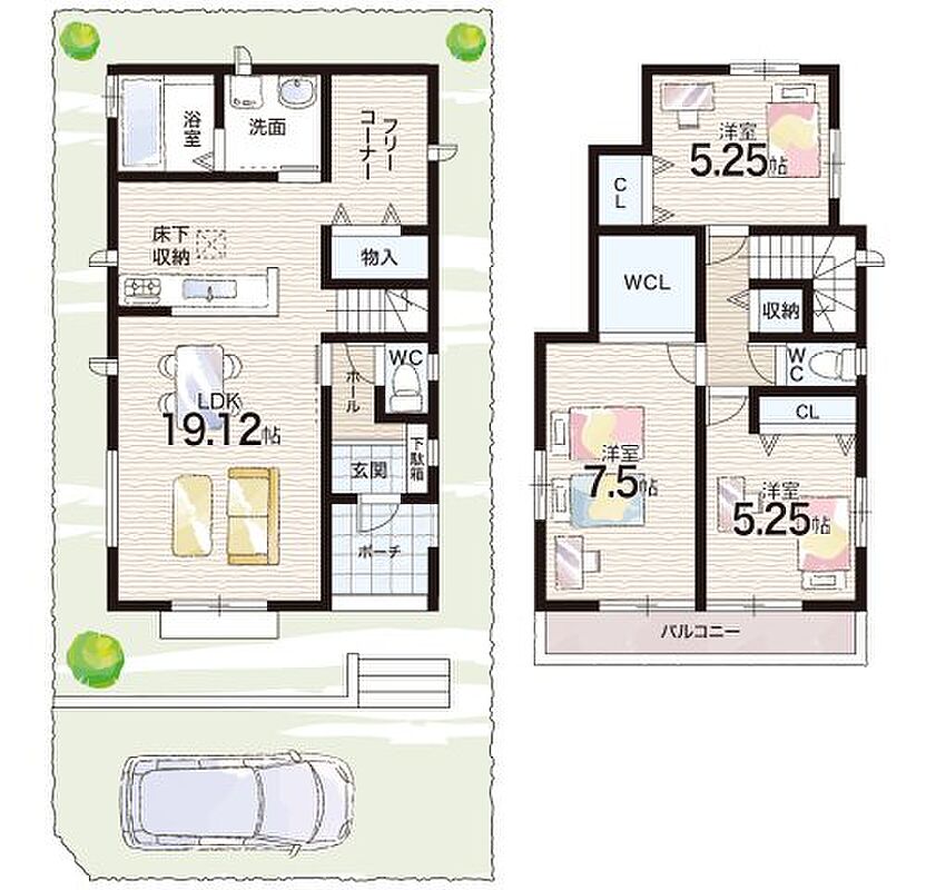 - ※完成予想図やCG合成画像は、門塀・植栽・庭・外観等、実際とは多少異なる場合があります。
