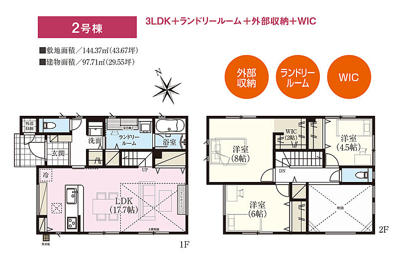 | 建物面積 | 97.71m2 | 土地面積 | 144.37m2 |