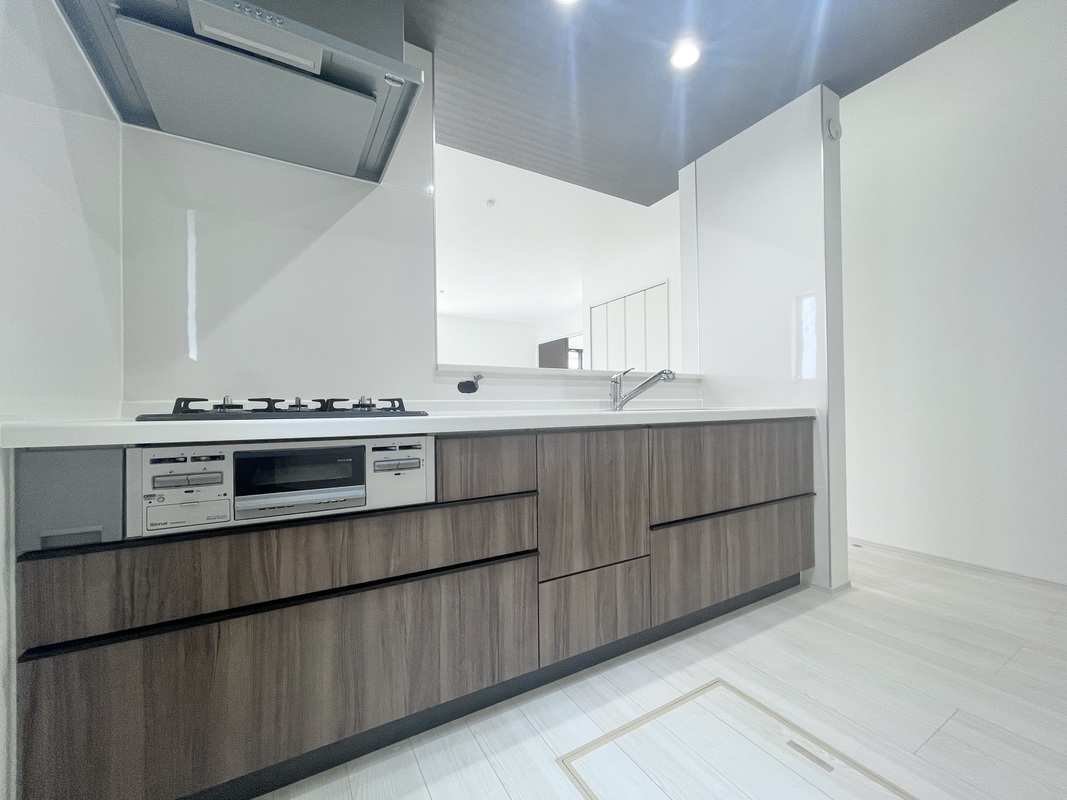 □対面式システムキッチン、浴室乾燥機、三面化粧台、床下収納など暮らしを豊かにする設備が整っています。