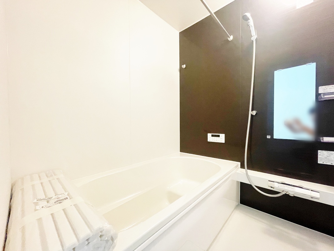 ○親子で背中の流しっこをしてもゆとりのある広々としたバスルーム。雨の日のお洗濯に便利な浴室乾燥機付き♪
