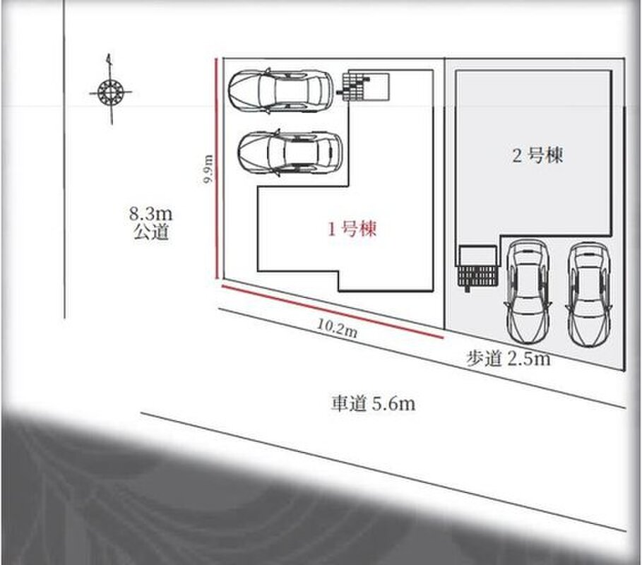 | 建物面積 | 101.51m2・102.68m2(30.70坪・31.06坪) | 土地面積 | 106.08m2・109.88m2(32.08坪・33.23坪) |