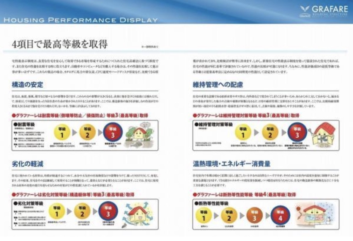 「耐震等級」「劣化対策等級」「維持管理対策等級」「断熱性能等級」の4項目で最高等級を取得しています。