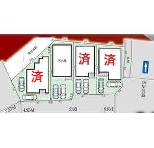 | 駐車場 | 2台 | 道路の幅員 | 道路幅:4.5m~16m、アスファルト舗装、他備考欄に記載 |