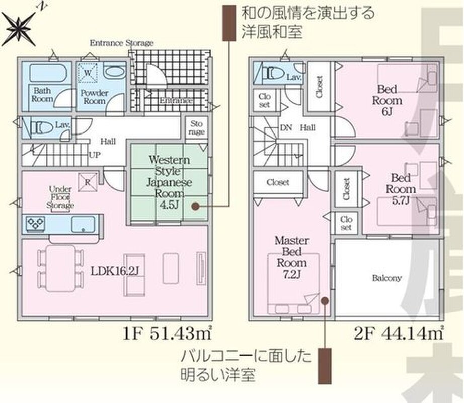 お陽さまの光をたっぷりと採り込め、明るい日常をお過ごしいただけます。どのお部屋も、採光良好な風通しの良い快適な空間となっております。洗濯や布団干しも快適です。