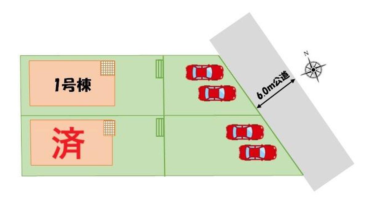 | 駐車場 | 2台 | 道路の幅員 | 道路幅:6m、アスファルト舗装 |