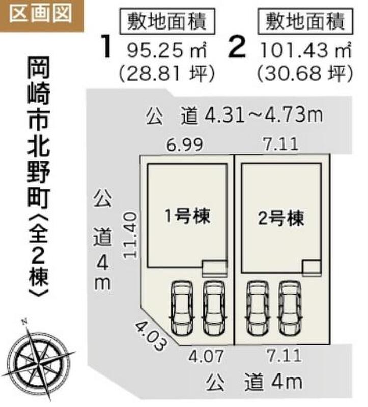 | 建物面積 | 89.24m2・101.04m2 | 土地面積 | 95.25m2・101.43m2 |