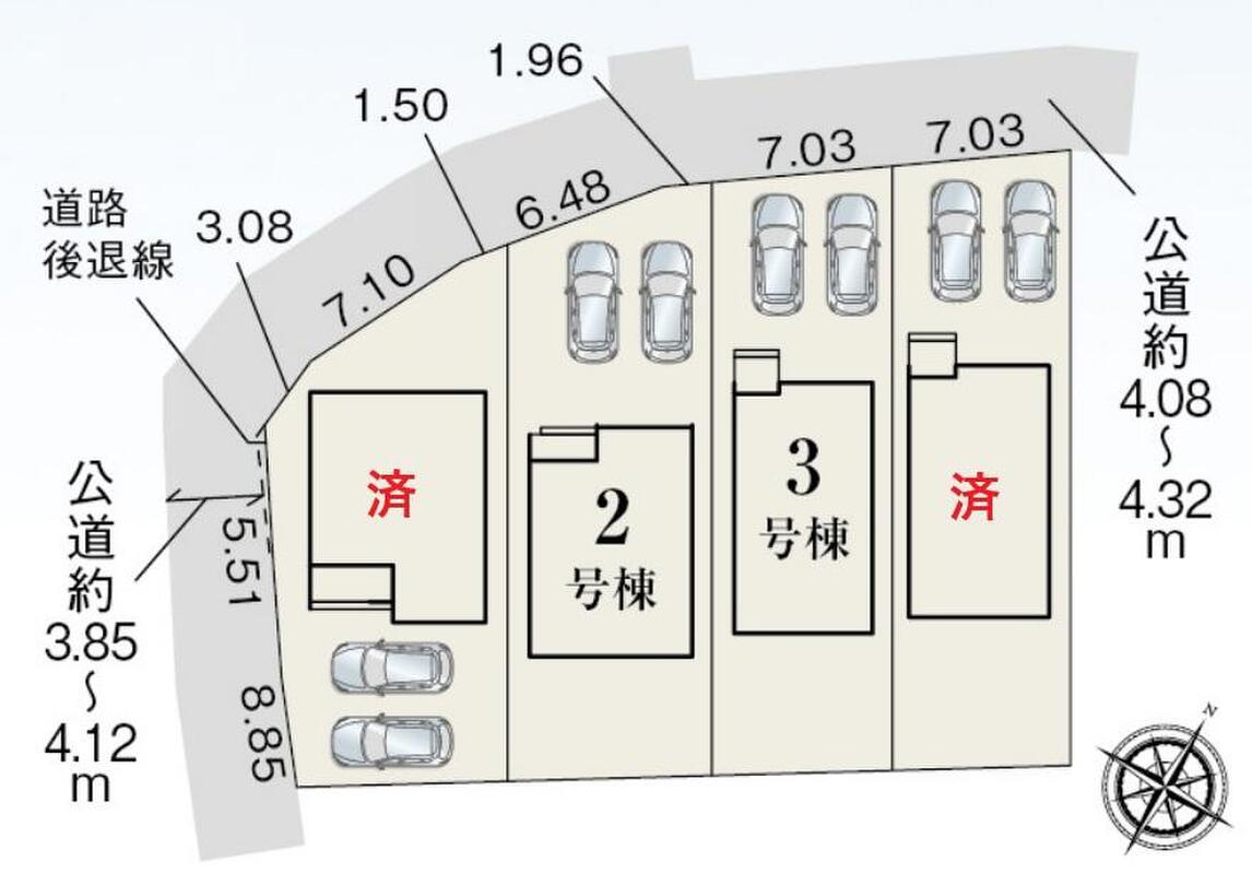 | 駐車場 | 2台 | 道路の幅員 | 道路幅:3.8m~4.3m、アスファルト舗装 |