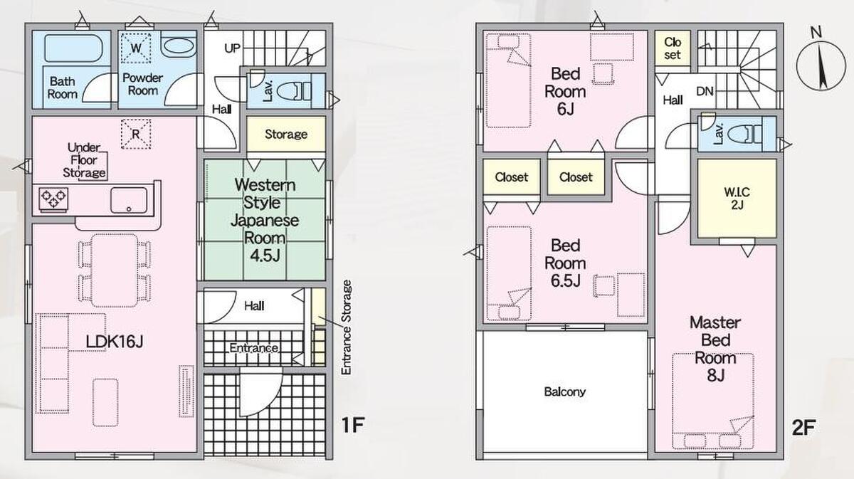 | 建物面積 | 98.82m2(29.89坪) | 土地面積 | 155.39m2・159.61m2(47.00坪・48.28坪) |