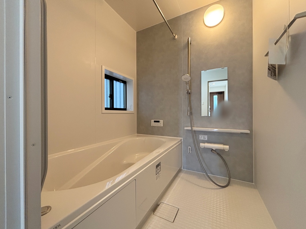 足を伸ばして毎日の疲れを癒せる広々1坪タイプです。半身浴もでき、ゆっくりと寛げます。お子様と一緒でも快適に入浴が出来ますね。