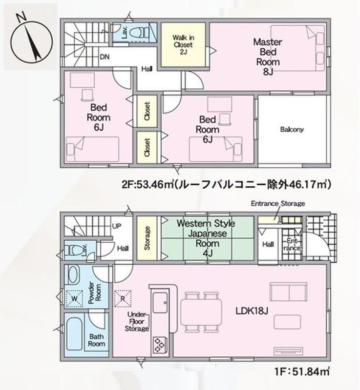 1号棟 間取り 4LDK 価格 3390万円 建物面積 105.3m2 土地面積 140.11m2 -