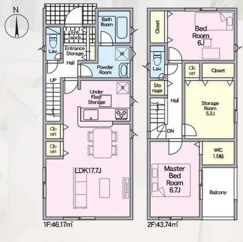 | 建物面積 | 89.1m2~102.87m2(26.95坪~31.11坪) | 土地面積 | 103.19m2~120.09m2(31.21坪~36.32坪) |
