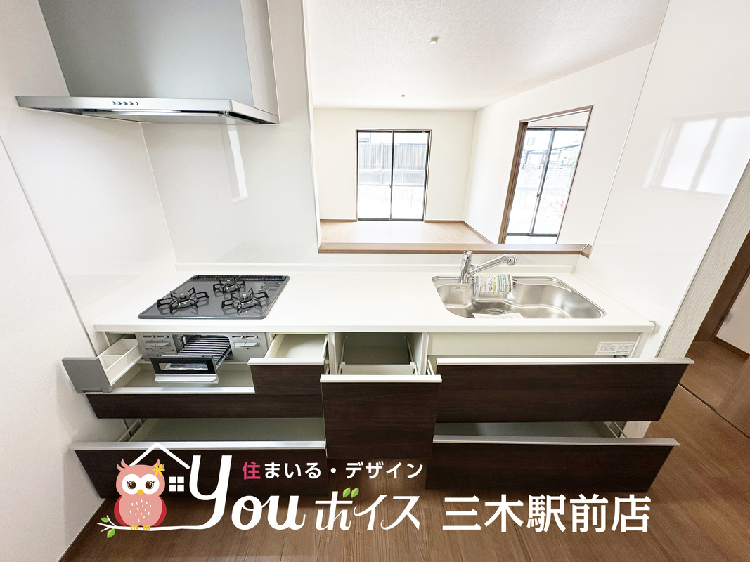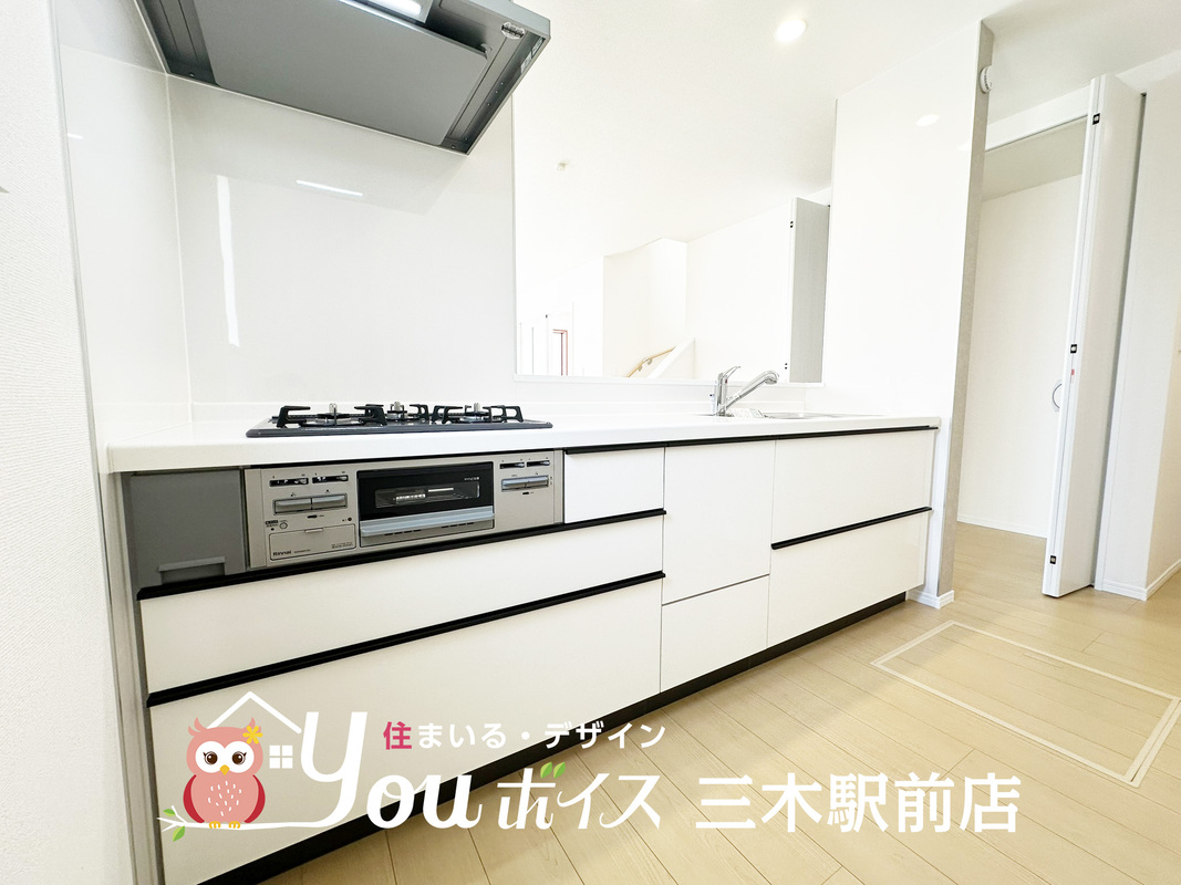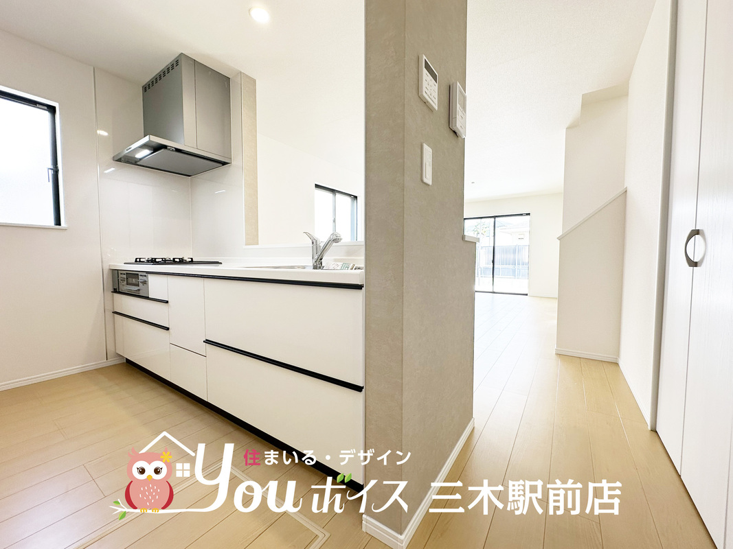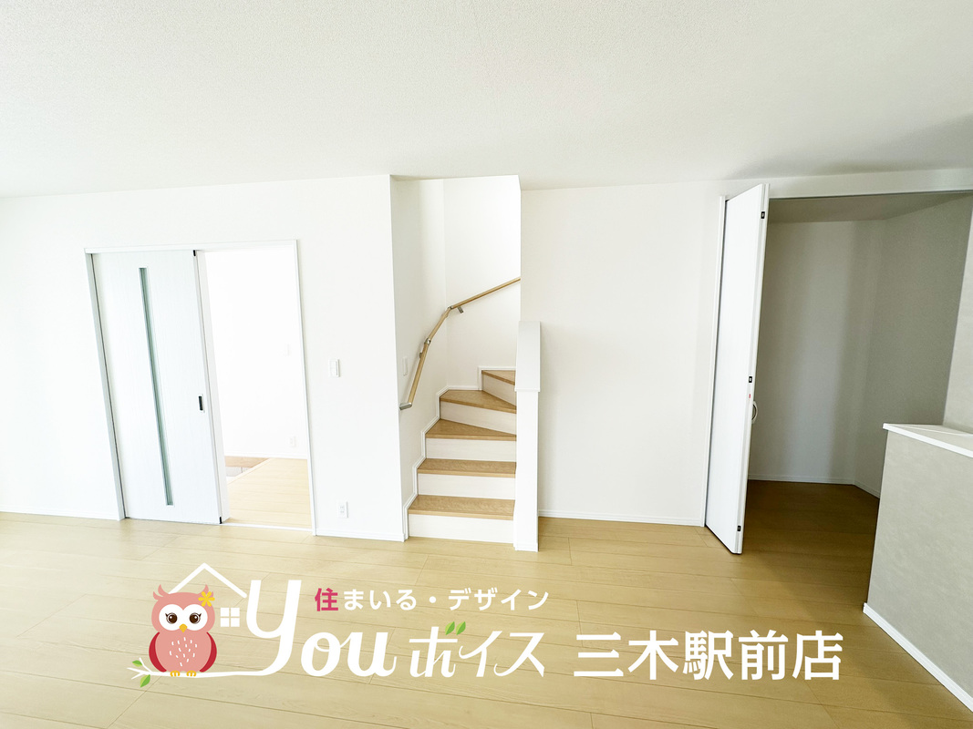 ■リビング階段や、キッチン横収納も見所です!■駅までの程近さに加え、お車でも東や西へアクセスしやすい立地 ■アルファードも入れる、静かな住宅地です■三木市は「住みやすいトカイナカ」2位!ご覧ください