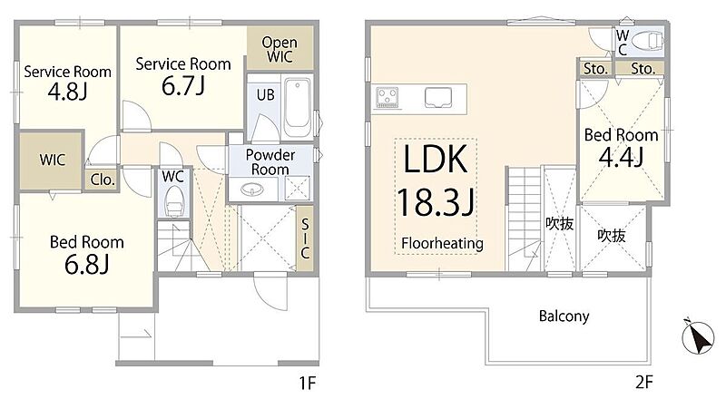 【2階建】最寄駅徒歩3分・LDK18帖・WIC付・広々バルコニー・新築戸建