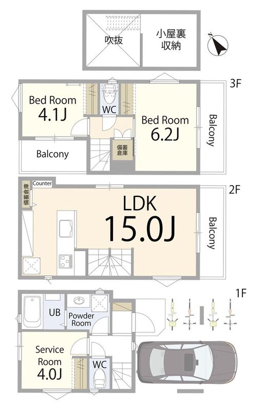 | 間取り | 2LDK+S- | 建物構造 | 木造3階建て |