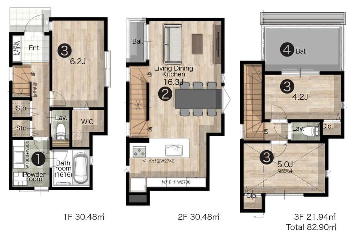 - ※完成予想図やCG合成画像は、門塀・植栽・庭・外観等、実際とは多少異なる場合があります。